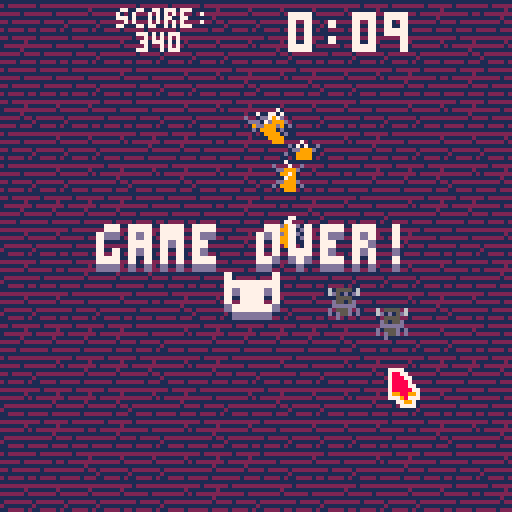 A simple PICO-8 game about protecting a cat from monsters in hell using your mouse. Originally I developed it because I had energy and spare time (Oh how I miss that...) inbetween two game jams, plus a little prototype of a drawing program made out of animated fireballs. T'was surprisingly popular at some point, more than my other games at least - maybe it was the cat theme or the mouse usage?
